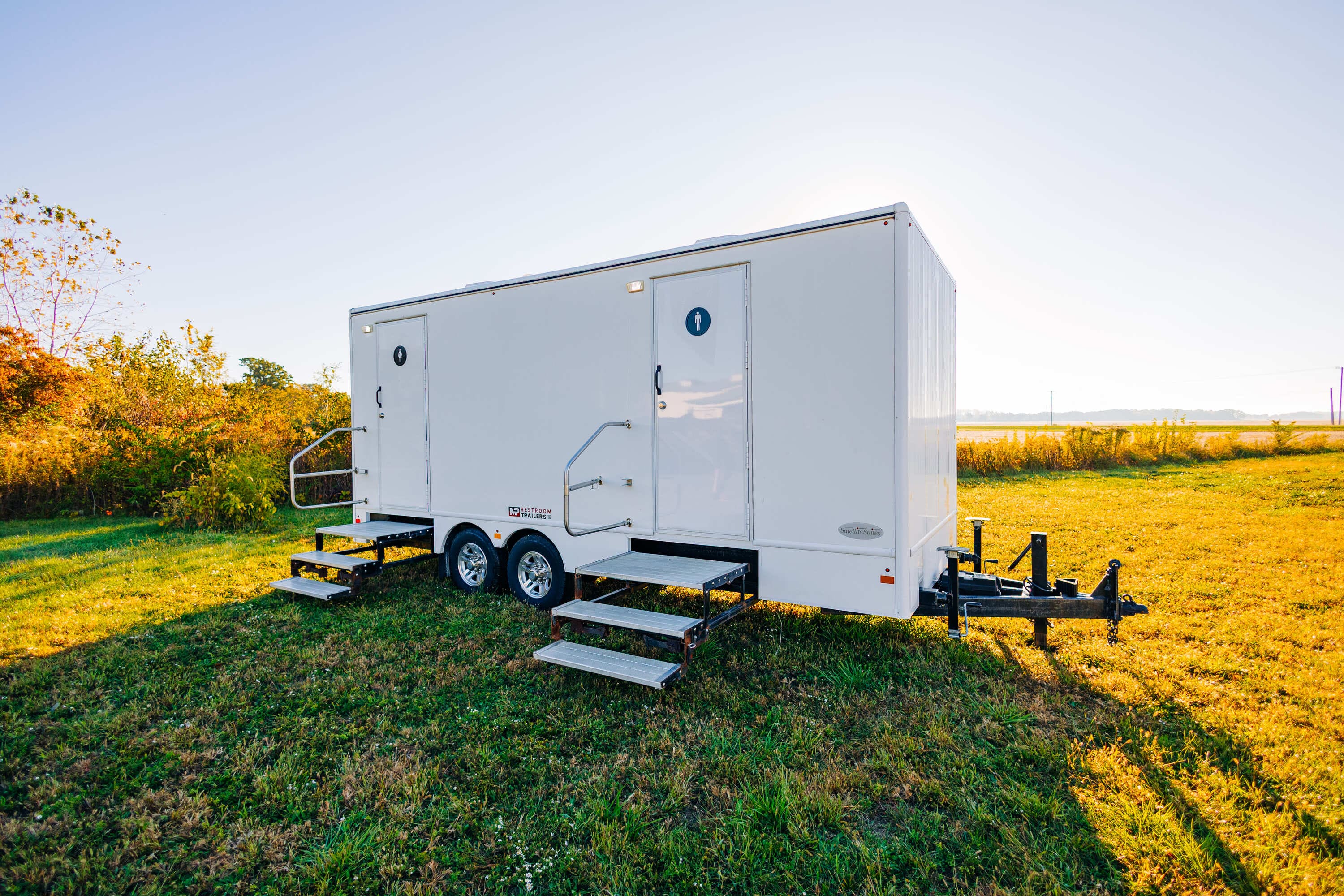 Spacious restroom trailer designed for high-traffic events and job sites.