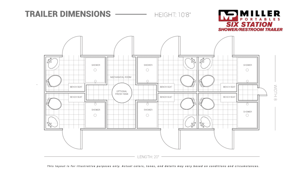 Offer combined restroom and shower comfort at your next special event. With six private, fully equipped rooms and climate control, this all-in-one trailer boosts guest satisfaction and convenience. Contact us to reserve your shower/restroom combo today!